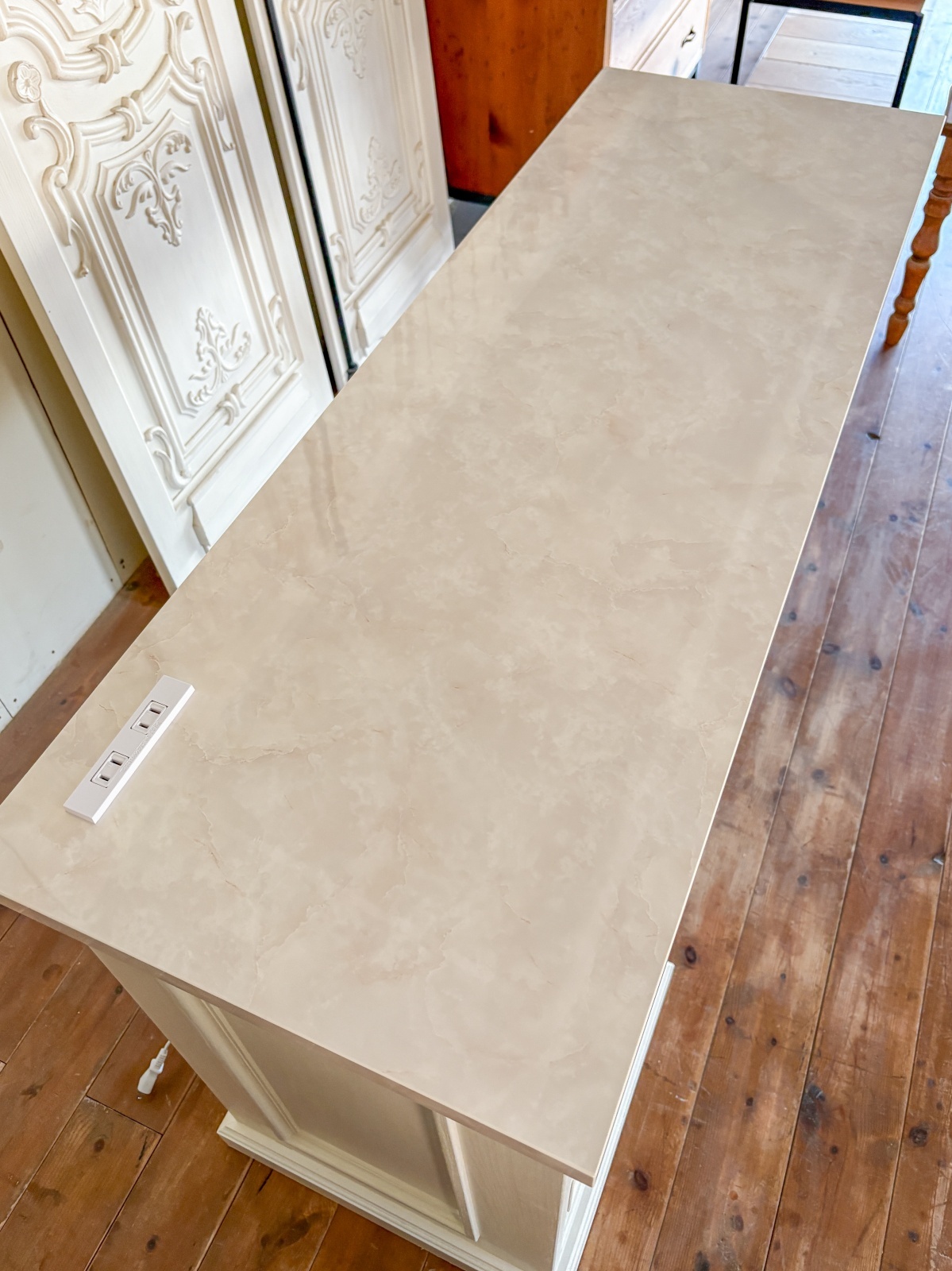 大理石柄のメラミン天板は汚れに強く、アセントにも耐久性があります。