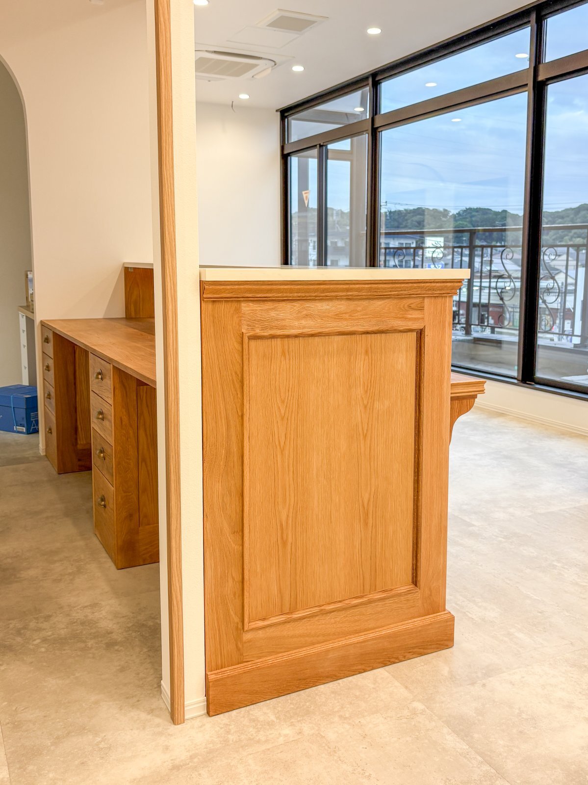 エレベーター搬入のため、家具は2分割して室内で組み立て設置しました。