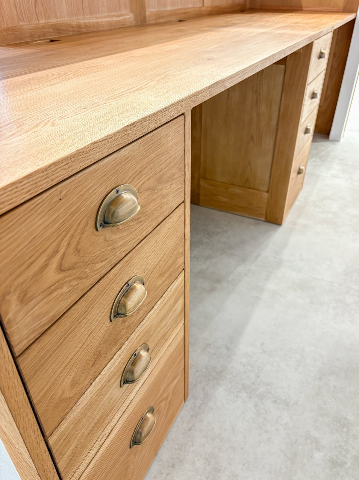ホワイトオーク材の美しい木目、やさしい手触りの家具です。
