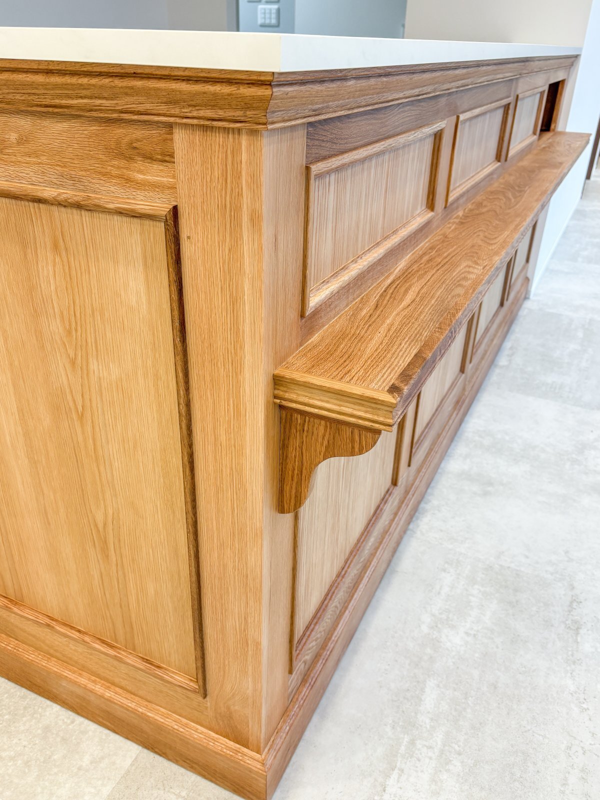 各所をモールディングで装飾したアンティーク調デザインの店舗家具です。