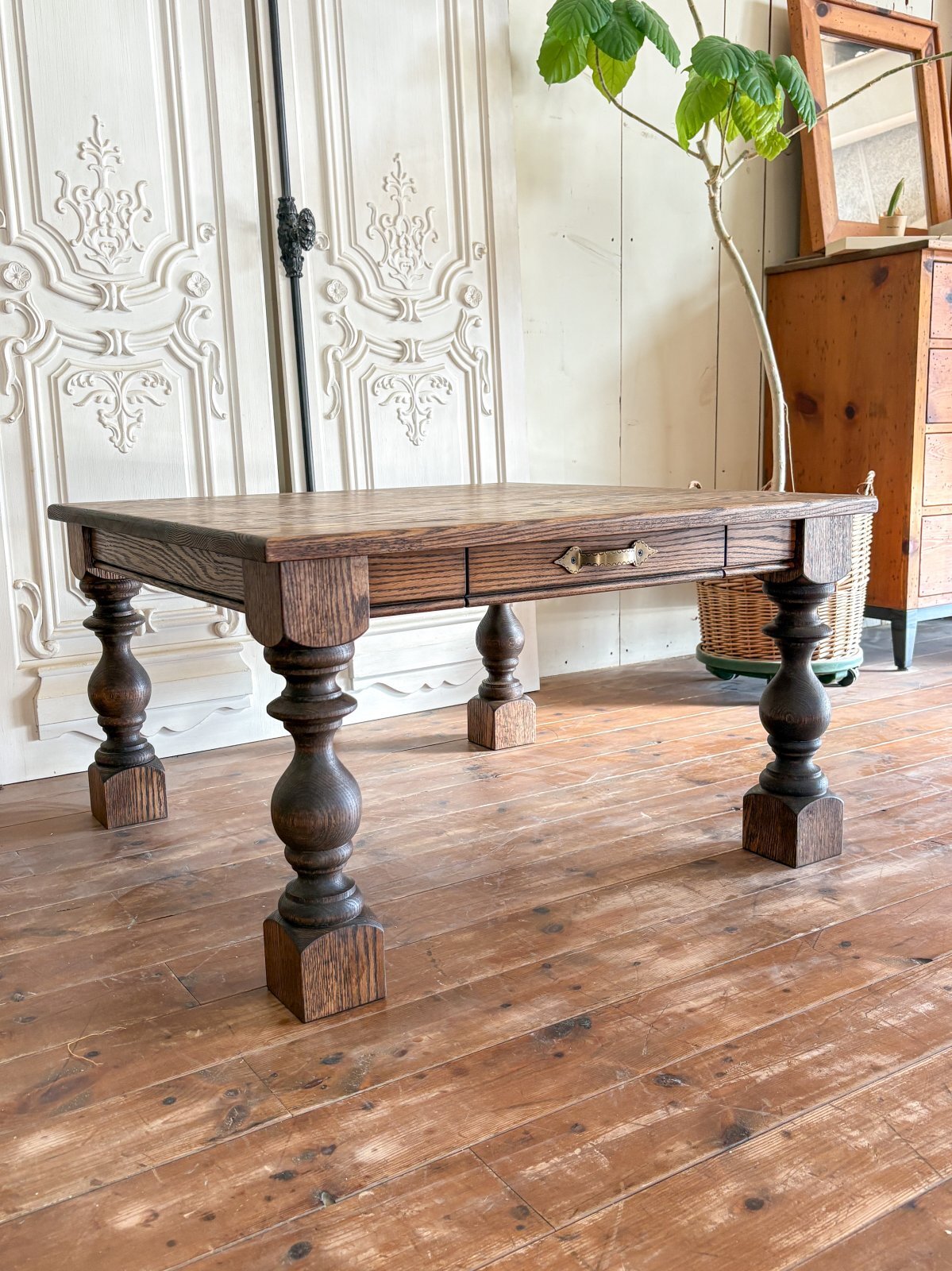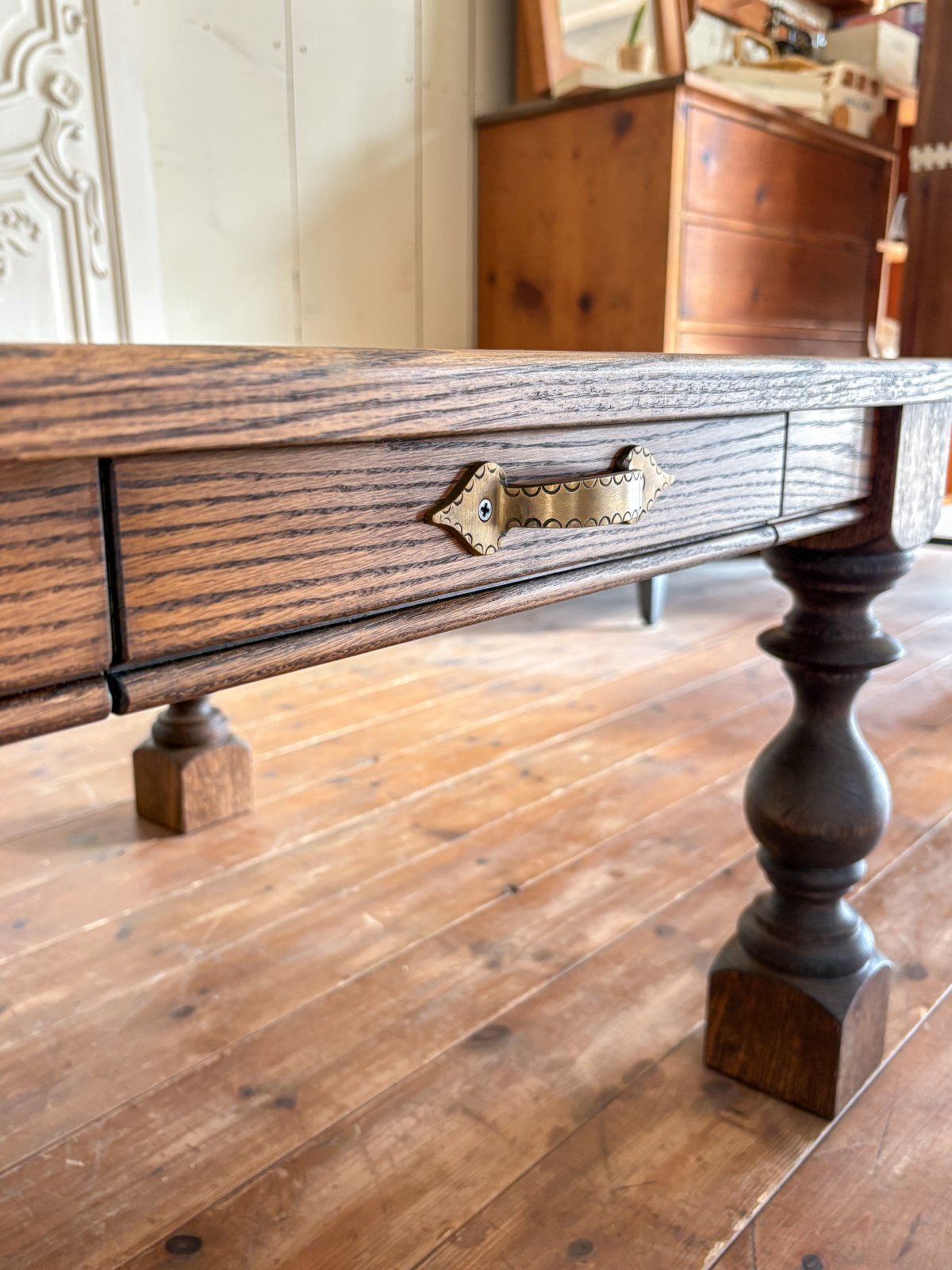 アンティークオーク家具が並ぶお宅に、デコラティブなろくろ足(ターンドレッグ)のソファテーブルがよく馴染みます。