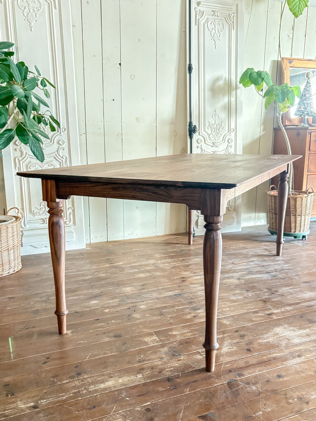 ウォールナットダイニングテーブル 特注ろくろ足「KS」 アンティーク調テーブル 足元広めver.