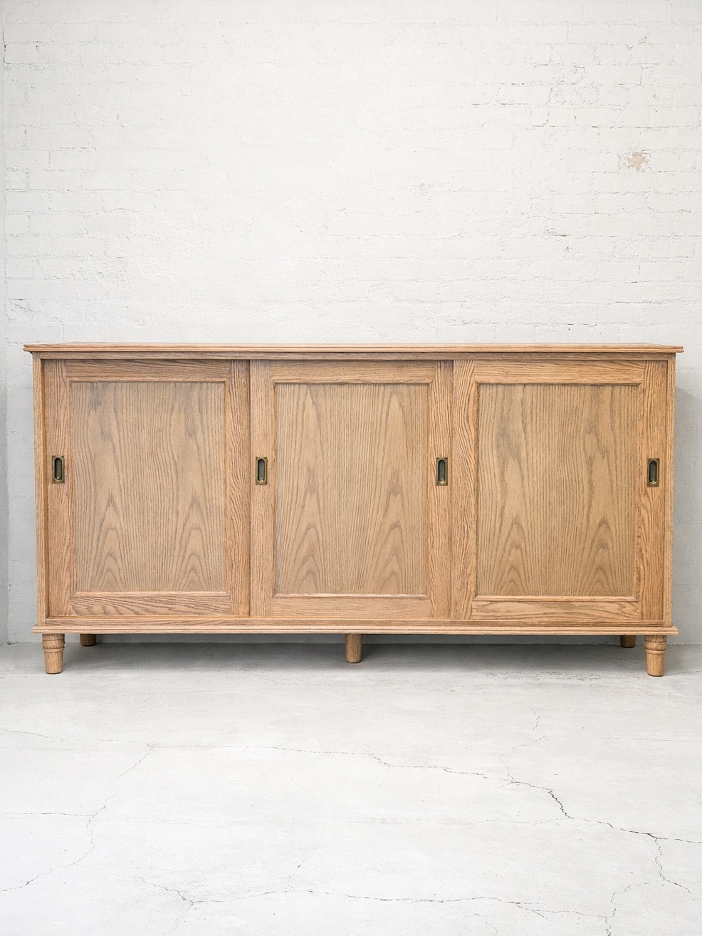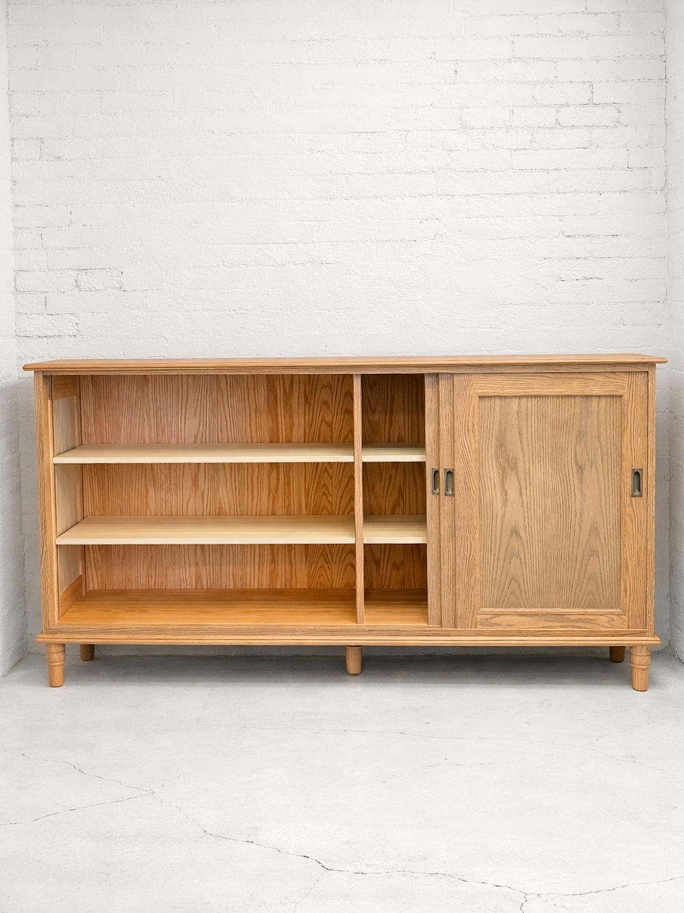 レトロなデザインで、和風とも北欧風とも見えるスライド扉のサイドボード。