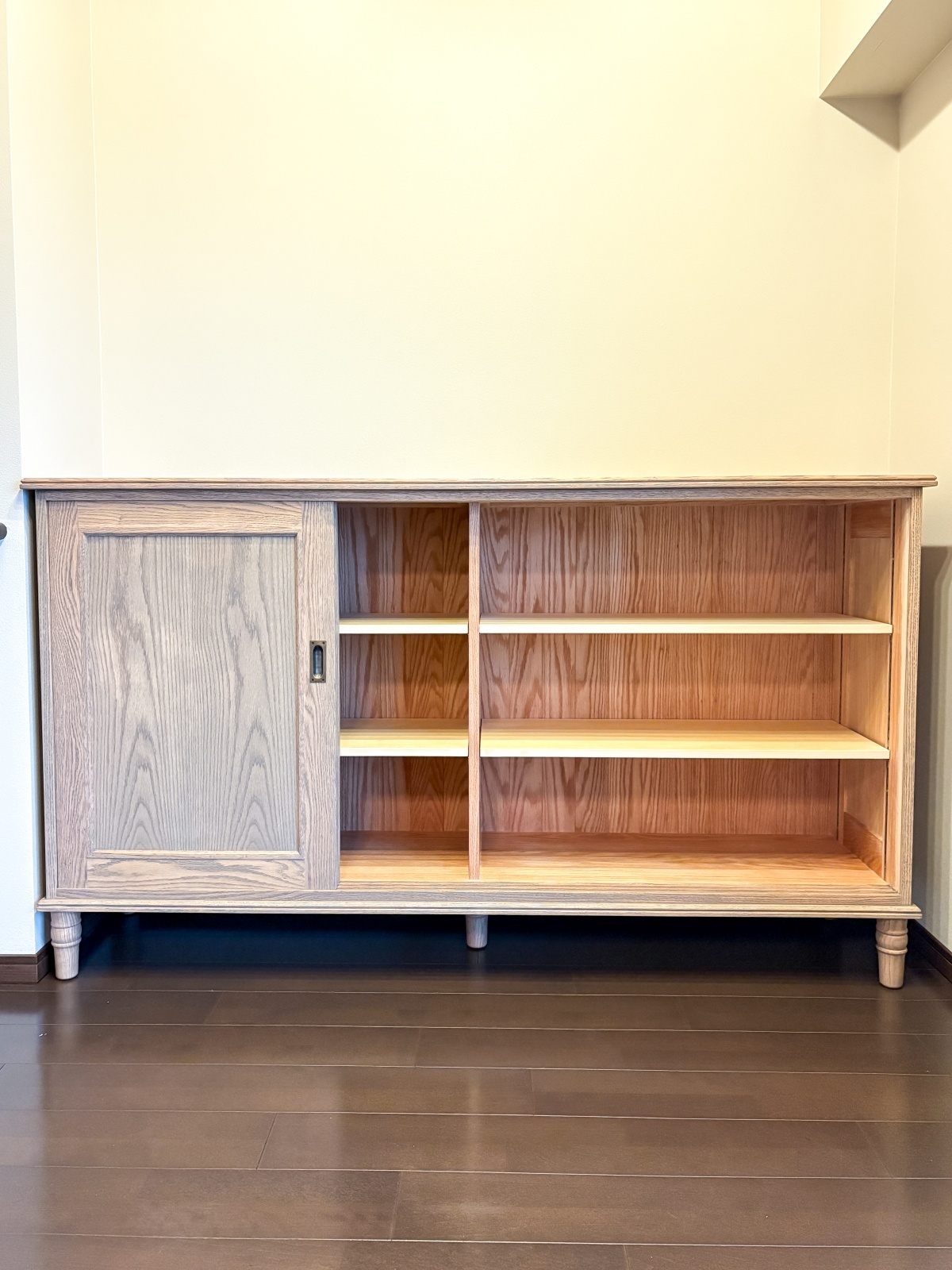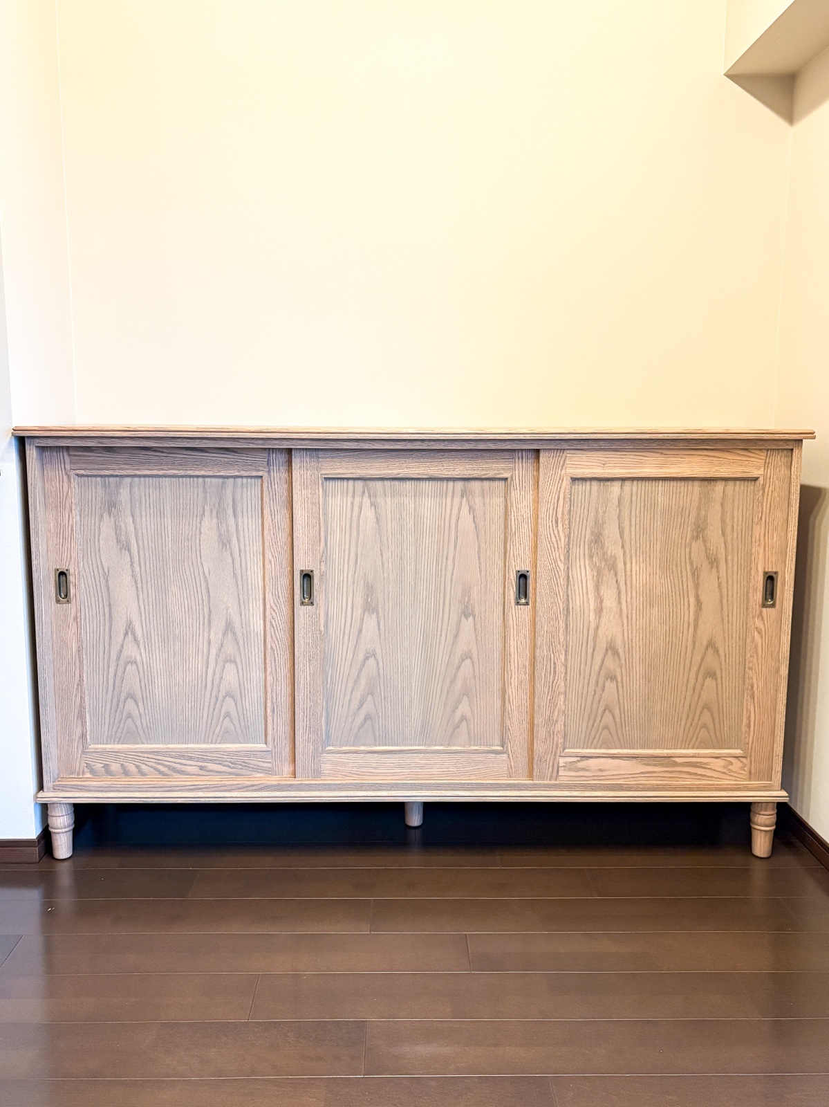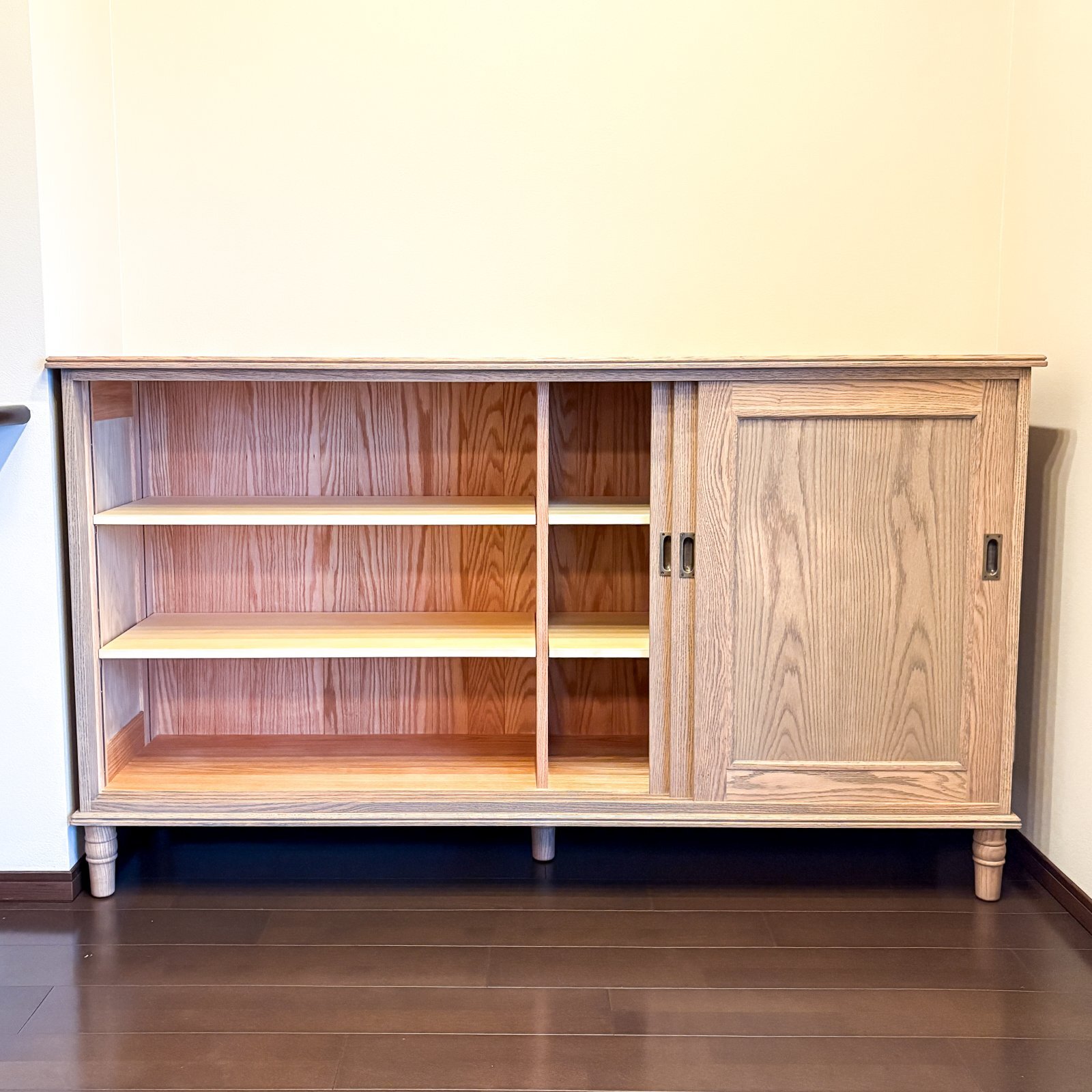京都のオーナー様宅に、オーク材で作ったレイロなサイドボードを納品させていただきました。