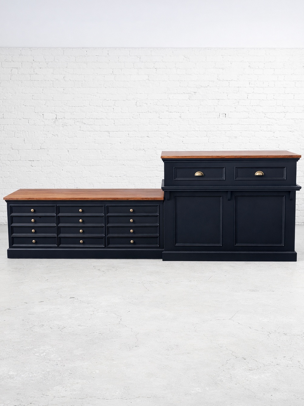 ■サイズ : W2500(チェスト1400+レジ台1100) D500 H1000(チェスト600) mm