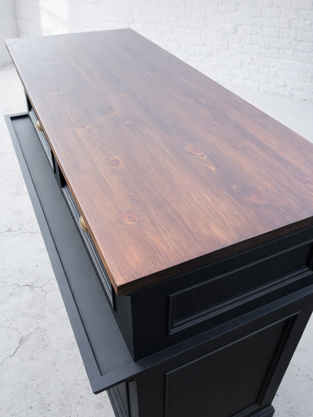 天板はビンテージ感のある雰囲気にするため、パイン材を使いました。
