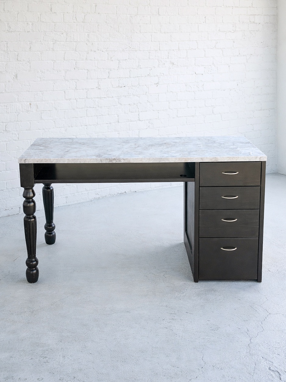 片方がろくろ足、片方がチェストになっている片袖デスク。チェストの左右入れ替えも可。