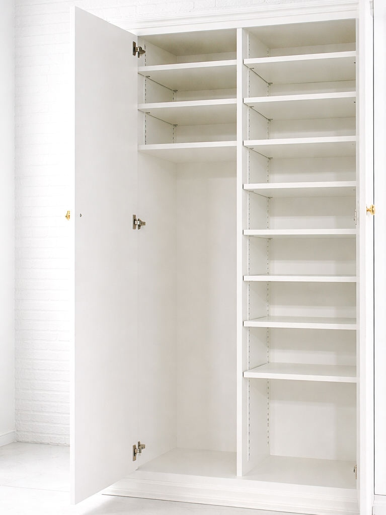 内側には細かな可動棚と、左側に傘立て用のスペースを内蔵しました。