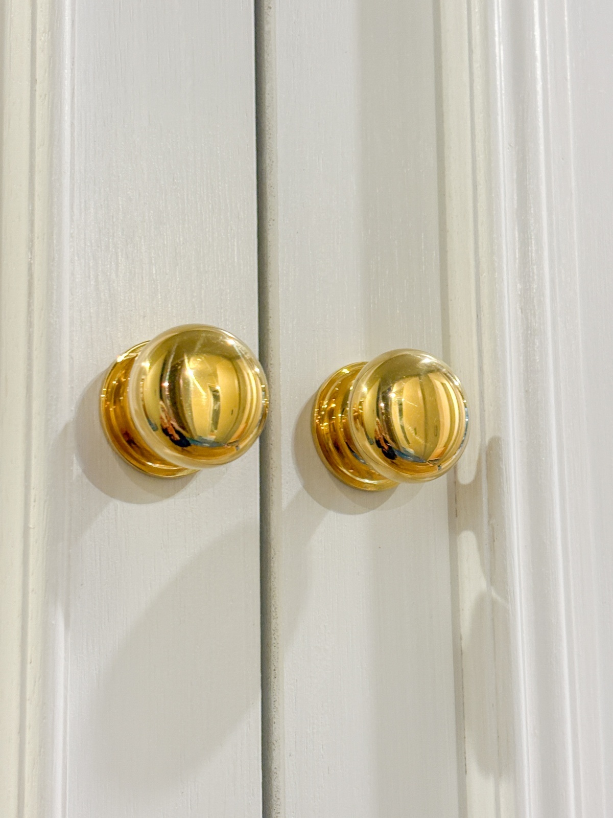 扉の持ちてには、豪華な真鍮取っ手を採用しました。その他、陶器の取っ手も選べます。