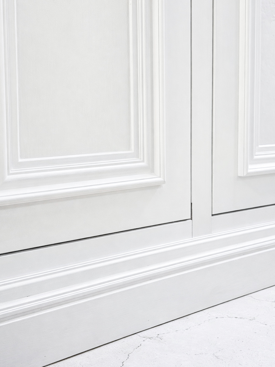 W1750、D390、H2075mmサイズで、2分割にして搬入、設置後にモールディング装飾を取り付けました。