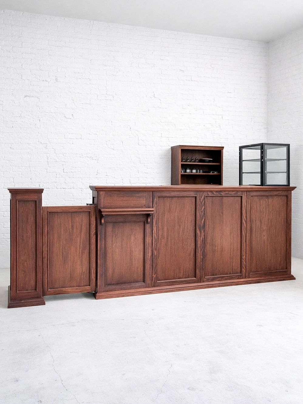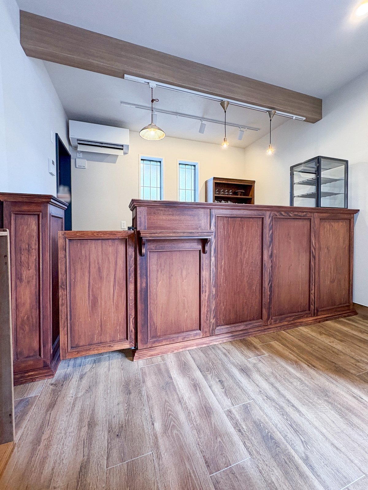 温かみのあるウッドカウンターは食品店にぴったり、お気軽にお問い合わせ下さいませ。