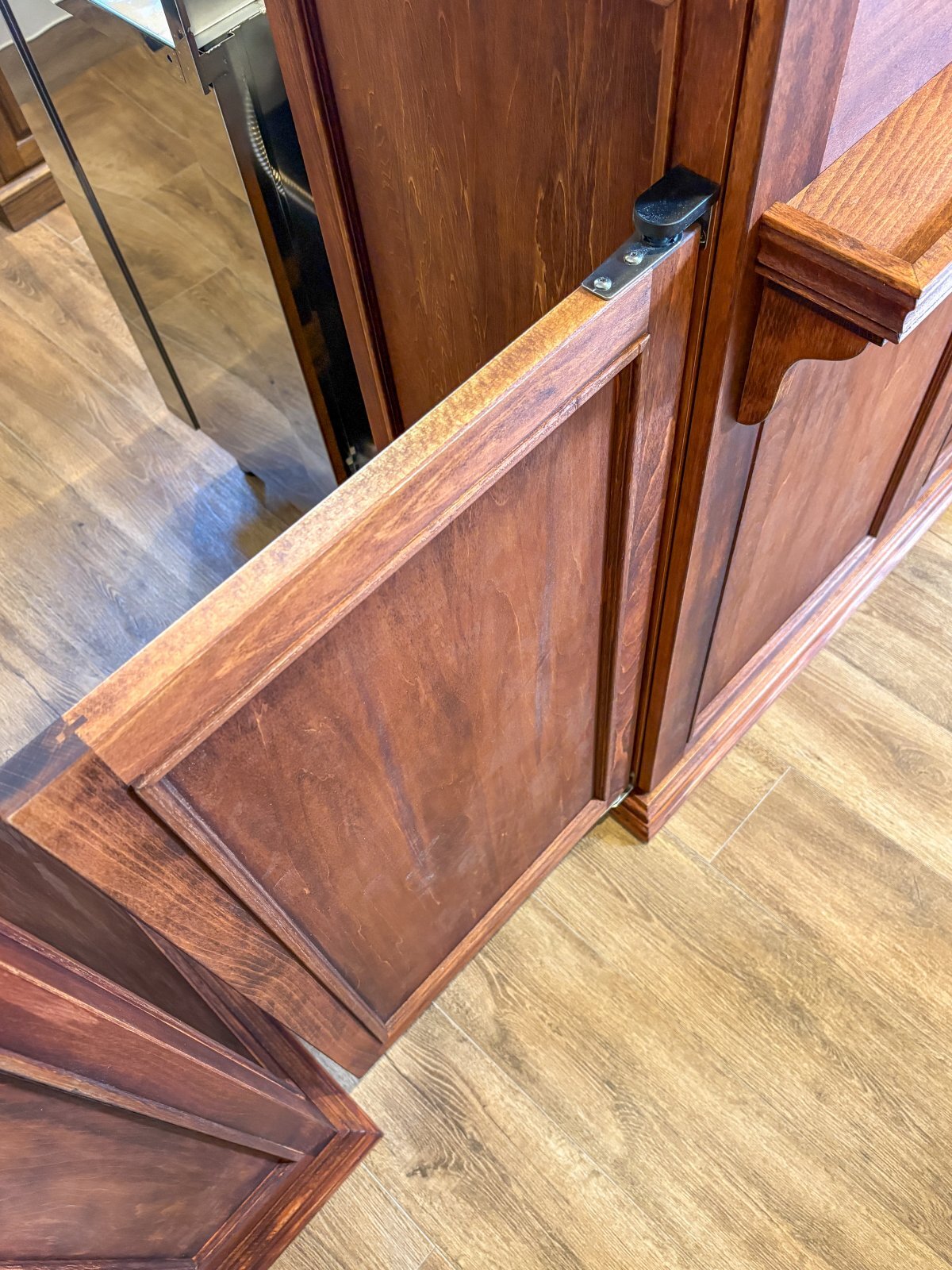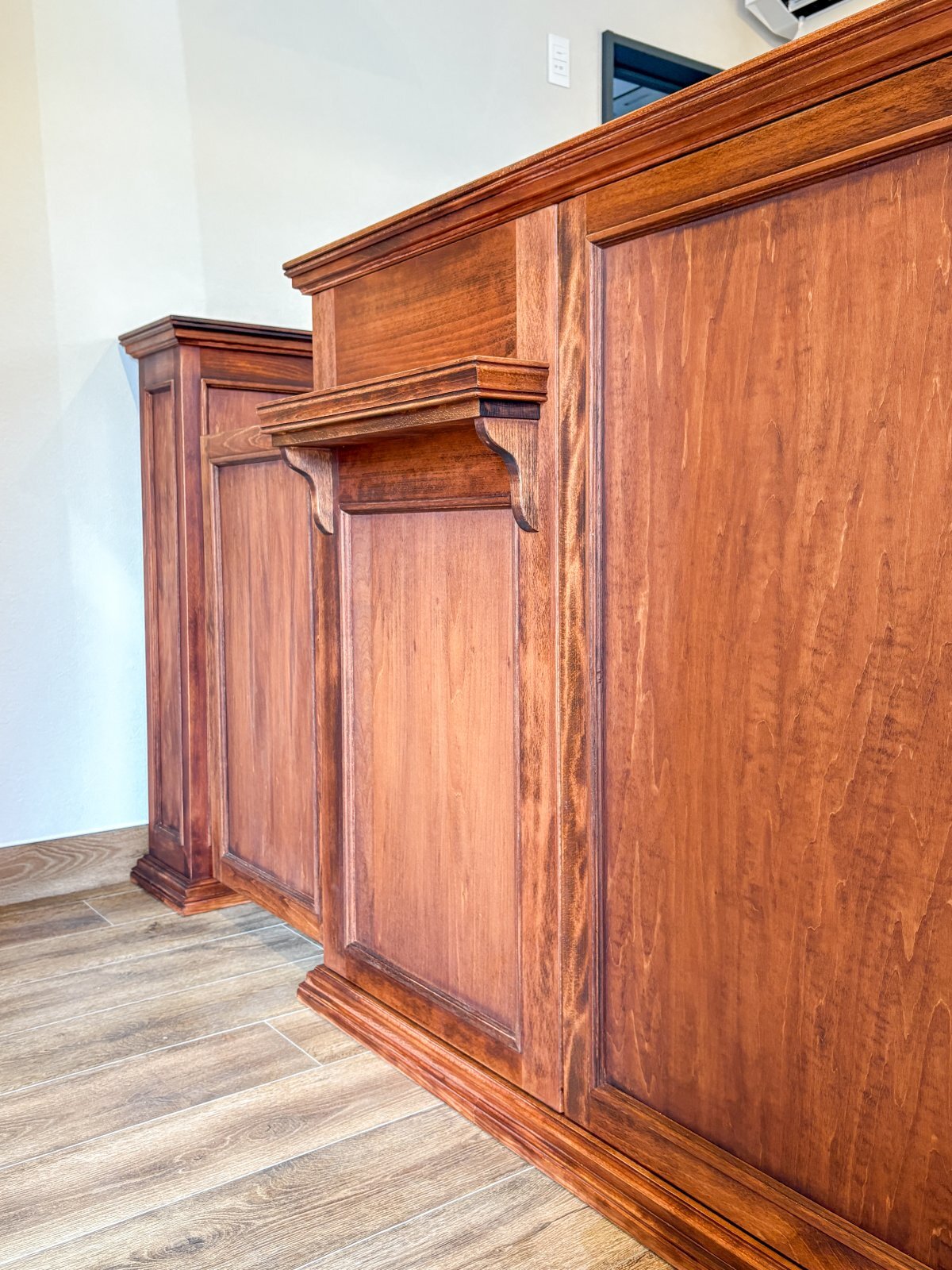 モールディングで細部まで装飾したクラシックアンティーク調のレジ台です。
