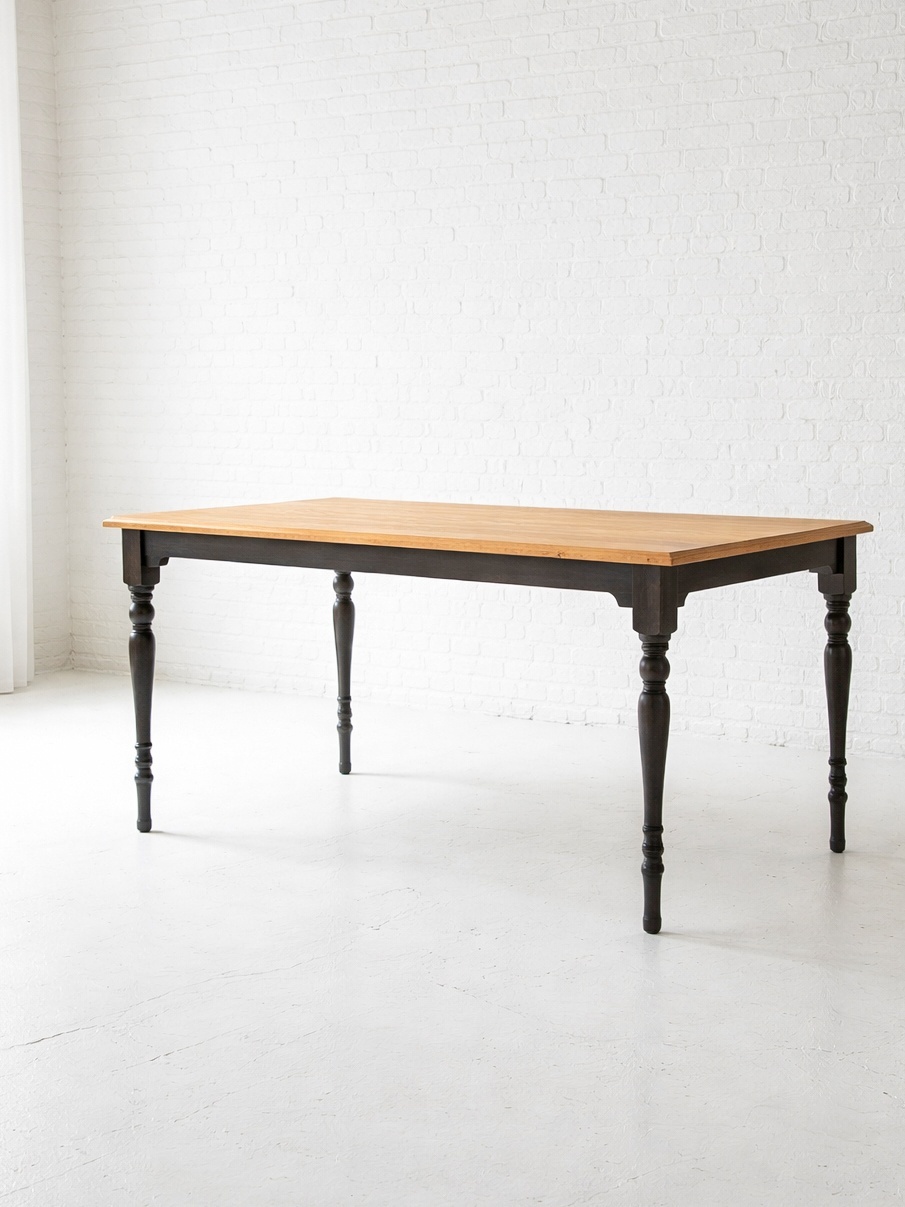 ホワイトオーク無垢材を使ったアンティーク調ダイニングテーブル。