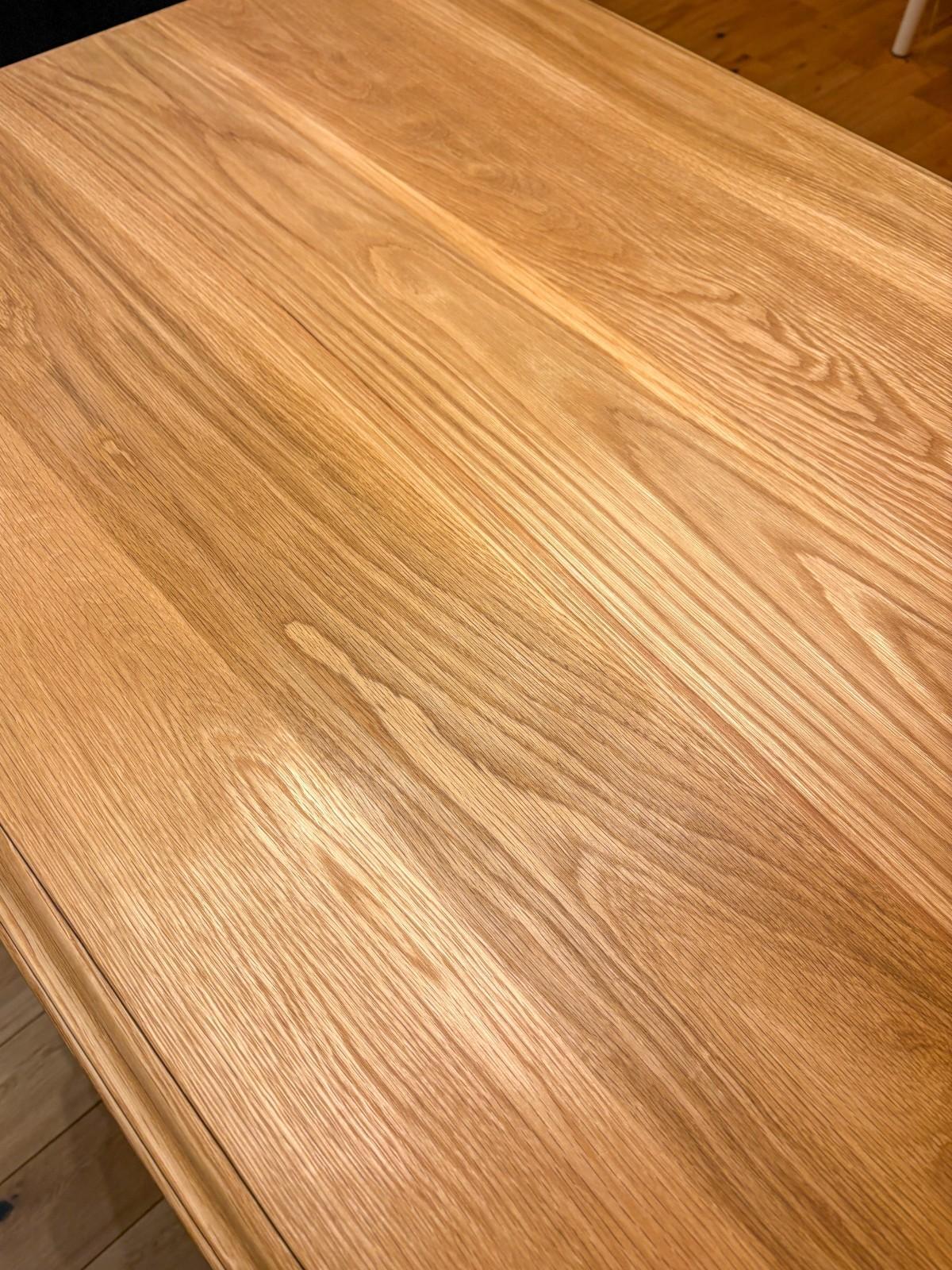 (4)無垢板を使っていますので、お使いのうちに木の反り・割れ・痩せ・節抜け・塗装割れなどが発生します。 お手入れにより発生を遅らせることが出来ますが、いずれは起きてくるものです。 無垢家具の特徴とご理解下さいませ。
